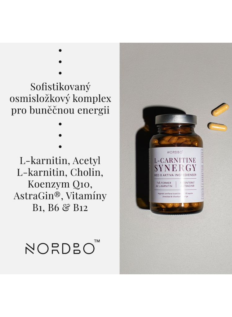 - L-karnitin je sloučenina podobná aminokyselinám, která se přirozeně vyskytuje v těle a podílí se na energetickém metabolismu. Acetyl-L-karnitin je forma rozpustná v tuku, která prochází hematoencefalickou bariérou, a často se používá v souvislosti s fyzickým i mentálním výkonem. L-karnitin-L-tartrát je rychle působící, dobře vstřebatelná forma, která je obzvláště ceněná pro podporu fyzické výkonnosti.