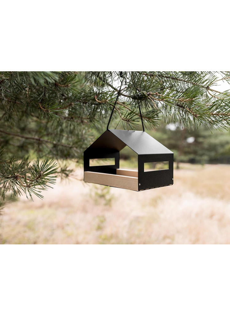 Pevná konstrukce v kombinaci s kovovou střechou chrání krmivo před deštěm, sněhem i nepříznivým počasím. Střecha zároveň prodlužuje životnost krmítka a zajišťuje, že potrava zůstane suchá a dostupná. Otevřené provedení umožňuje snadný přístup ptákům a zároveň pohodlné doplňování krmiva.