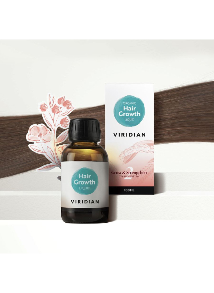 Viridian Organic Hair Growth Liquid obsahuje komplex organických olejů zaměřených na růst vlasů. Je určený pro přímou konzumaci. Obsahuje organický lněný, světlicový, dýňový a pupalkový olej, dále komplex z prosa zahrnující extrakt ze semen prosa, slunečnicový olej, olej z pšeničných klíčků a rozmarýnový olej.