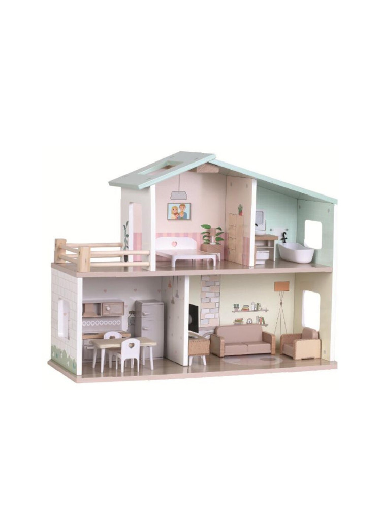 Domeček je vyroben z kvalitního a odolného dřeva, které zaručuje dlouhou životnost i při každodenním hraní. Jednoduché a přívětivé provedení podporuje kreativitu - dítě není omezováno detaily, ale naopak může zapojit vlastní fantazii a vytvářet si jedinečný svět podle svých představ. Hra s domečkem pomáhá dětem lépe chápat vztahy mezi lidmi, rozvíjet empatii a učit se spolupráci při společné hře se sourozenci či kamarády.