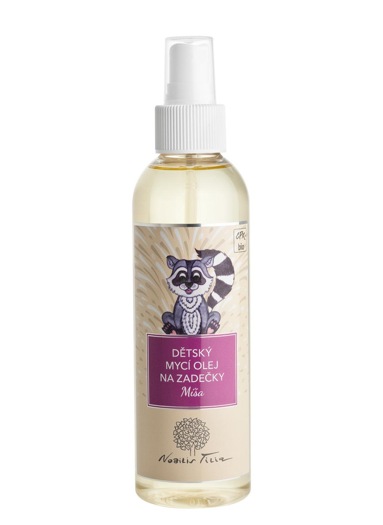 Mýval Míša je mycí olej s obsahem bio slunečnicového rostlinného oleje. Je tu, aby důkladně, ale šetrně vyčistil pokožku dětských zadečků, které se celý den těsnají pod plenkami. Jeho jemná konzistence zvláční a vytvoří ochranný film, čímž působí také jako prevence před vznikem opruzenin. Bylinková vůně éterického oleje z heřmánku římského zároveň zklidní namáhanou pokožku i dětskou mysl a vám zpříjemní přebalování.
