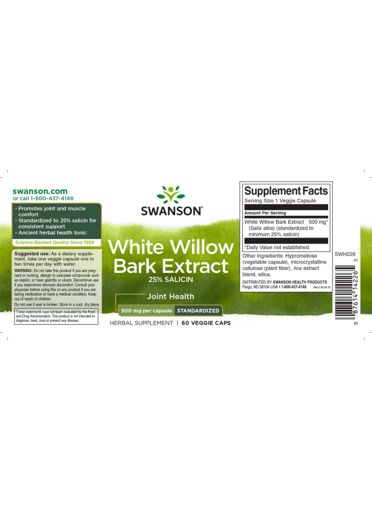 Swanson White Willow Bark Extract (extrakt z Vrby bílé) 500 mg, 60 rostlinných kapslí - EXPIRACE 6/2023